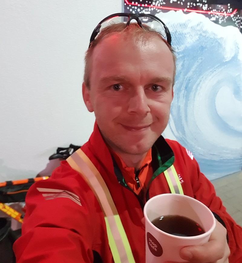 Czemu nie w 100%? Dałbym radę przejechać więcej, gdyby nie było wiatru (a jeszcze więcej, gdyby wiał w plecy). I… zapomniałem zabrać ciepłych skarpetek do jazdy w nocy :) To akurat był drobiazg, stopy aż tak mi nie marzną, ale nie obraziłbym się, gdybym jednak miał coś grubszego. W tekście z zeszłego roku pisałem Wam, że za późno zacząłem się ubierać i przemarzłem. W tym nie popełniłem tego błędu i kolejne warstwy odzieży zakładałem prawie od samego startu. Wpływ na to miał m.in. wiatr, ponieważ nawet gdy termometr wskazywał 17 stopni, odczuwalna temperatura była sporo niższa i dochodził do tego jeszcze pęd powietrza podczas samej jazdy.