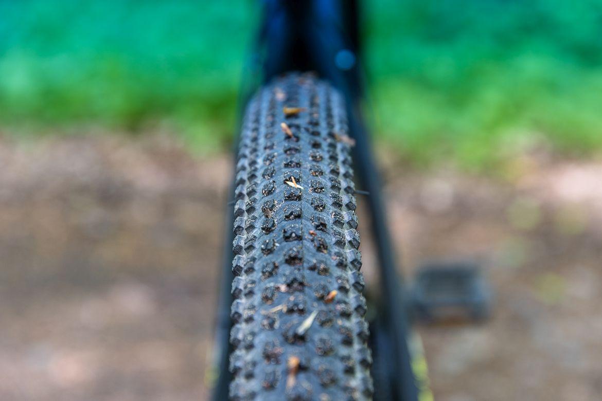 Opony mają uniwersalny, dość łagodny bieżnik. Nie są one głośne na asfalcie, jednocześnie na gruntowej drodze fajnie trzymają się nawierzchni. Warto poeksperymentować z ciśnieniem i na pewno nie pompować ich na maksa – dzięki czemu skorzystamy z tego, że będą w pewnym stopniu tłumić nierówności.