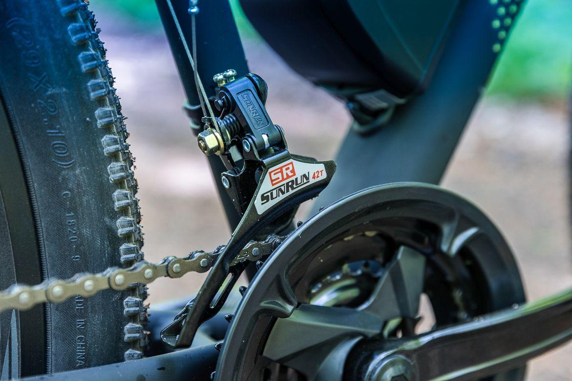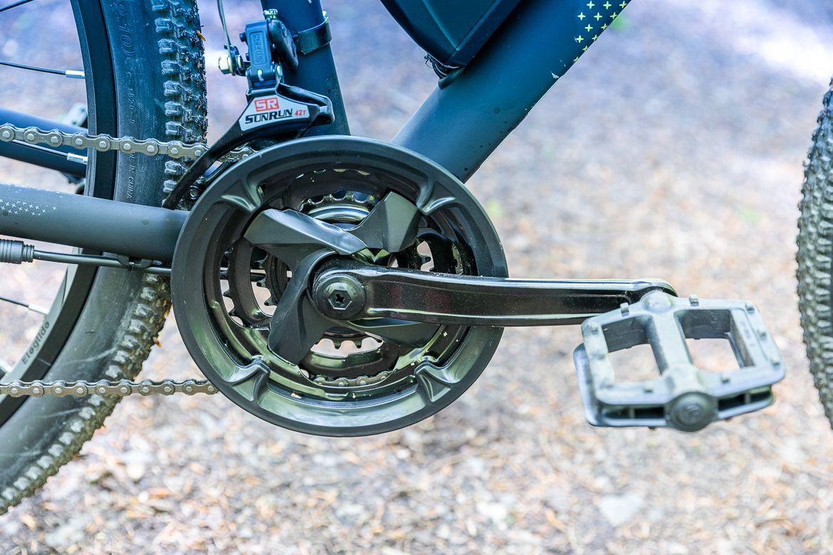 Mniej ciepłych słów mam dla przedniej SunRun. Producent mógł dołożyć te 15 złotych choćby do przerzutki Shimano Tourney. Mimo podregulowania, przerzutka zmienia biegi dość leniwie, zwłaszcza na większą tarczę. Nie mówię, że działa to źle, ale mogłaby być trochę bardziej “zdecydowana” w swoich działaniach. Na szczęście, jeżeli kiedyś się rozsypie, jej wymiana nawet na podstawową przerzutkę Shimano to będzie koszt 30 złotych.