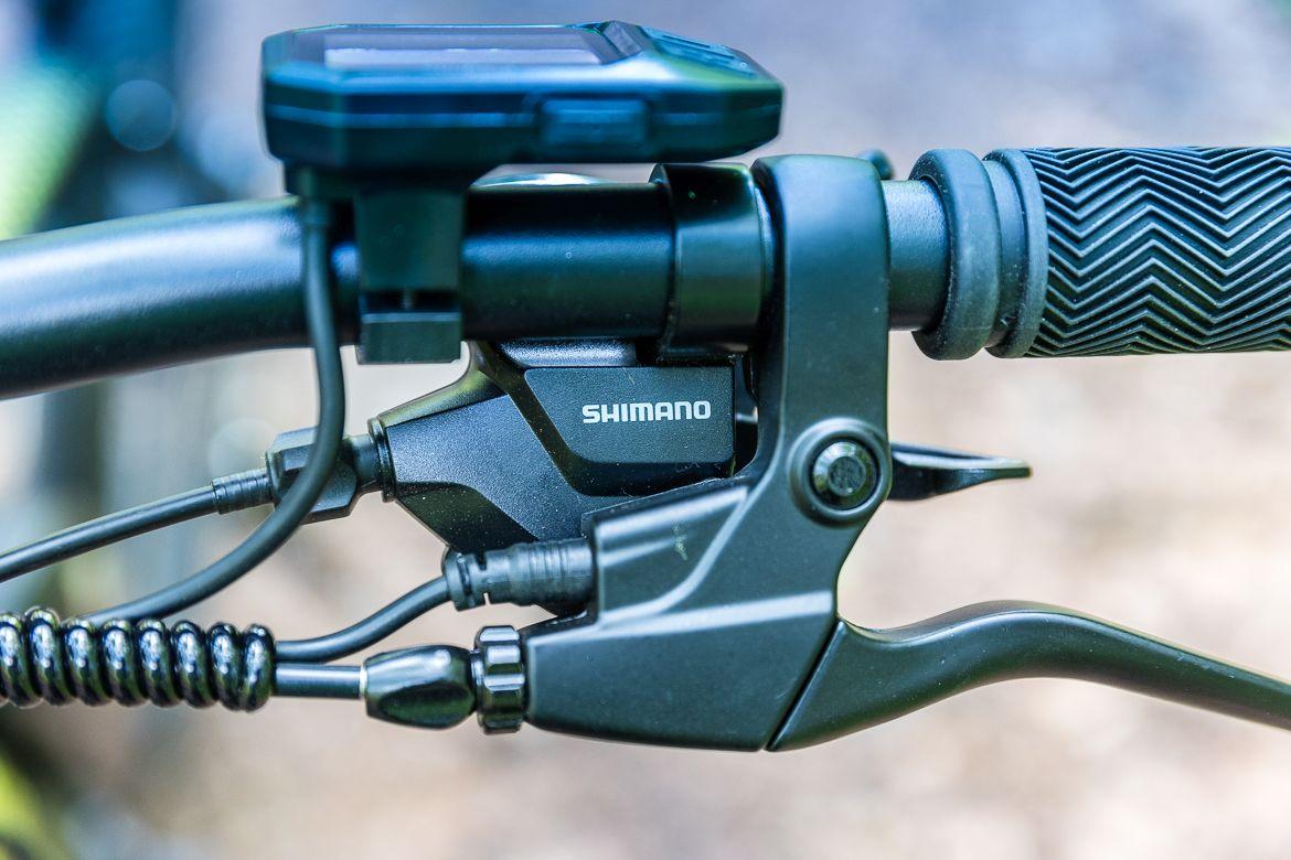 Napęd to klasyczny układ – 3 tarcze na korbie i 7 przełożeń na wolnobiegu. Są one dobrane tak, że pozwalają pojechać trochę szybciej nadal pedałując, a jednocześnie starczają na większe podjazdy z włączonym wspomaganiem. Ze wszystkich elementów napędu najbardziej byłem zadowolony z… manetek :) Tu producent nie zdecydował się na żadne oszczędności i zamontował manetki Shimano Altus SL-M315. Operuje się nimi bardzo łatwo i pewnie, są dobrze wyprofilowane i wyposażone we wskaźniki wrzuconego przełożenia.