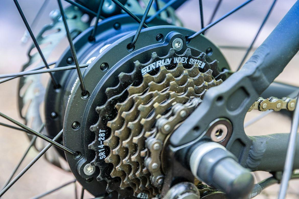 Z tyłu pracuje przerzutka Shimano z serii Tourney TZ do spółki z wolnobiegiem SunRun. Precyzja zmiany biegów jest wystarczająca i w zasadzie tyle mogę napisać. Ot, biegi się zmieniają bez większego zawahania i już.