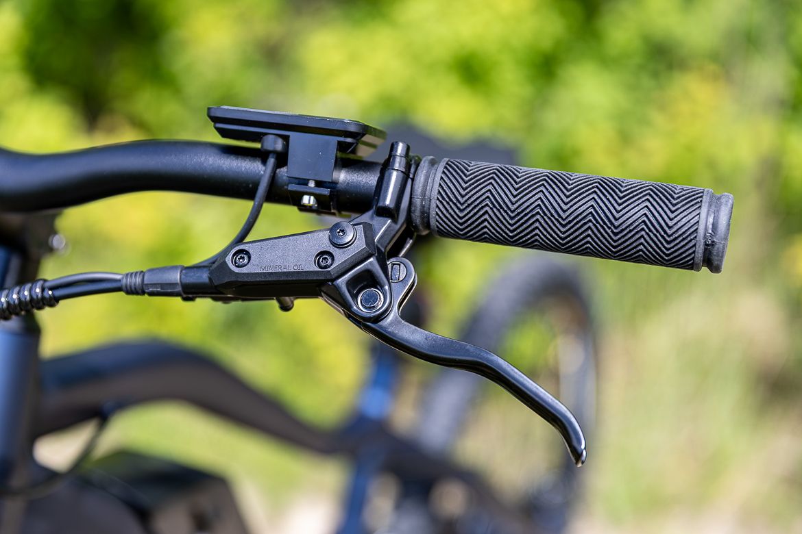 Hamulce w testowanym rowerze nie były oznaczone logiem żadnego producenta, ale widać tu ogromną inspirację zaciskami Shimano. Natomiast klamki hamulcowe przypominają te produkowane przez Tektro. W praktyce działają bardzo dobrze i sprawnie wyhamowują rower.