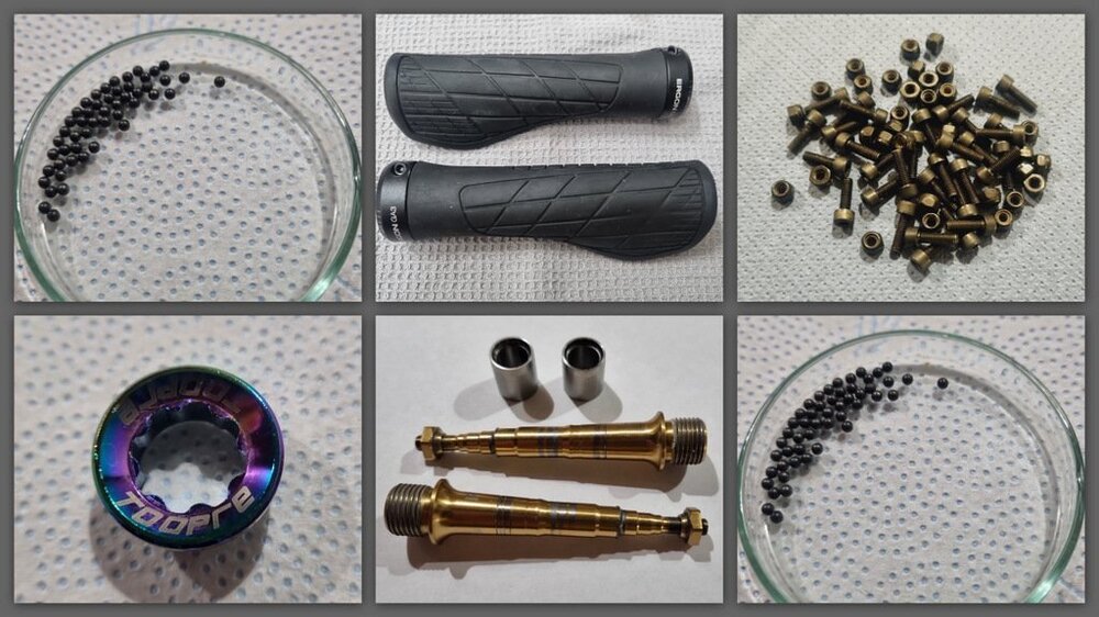 Dokładam do listy: Ceramiczne kulki do pedałów Shimano, rozm. 3/32" - (50 szt.) 40 zł --- https://www.olx.pl/d/992406905/?bs=olx_pro_listing Gripy ergonomiczne / anatomiczne Ergon GA3 (small), czarne 70 zł --- https://www.olx.pl/d/992433777/?bs=olx_pro_listing Piny do pedałów platformowych Race Face Chester (32 szt.) 45 zł --- https://www.olx.pl/d/994287073/?bs=olx_pro_listing Śruba aluminiowa do korb Shimano Hollowtech 2 (oil slick, M20x8) 10 zł --- https://www.olx.pl/d/992434184/?bs=olx_pro_listing Tytanowe osie do pedałów Shimano PD-M8100/8120 (z bieżniami) - UŻYWANE 40 zł --- https://www.olx.pl/d/991674995/?bs=olx_pro_listing