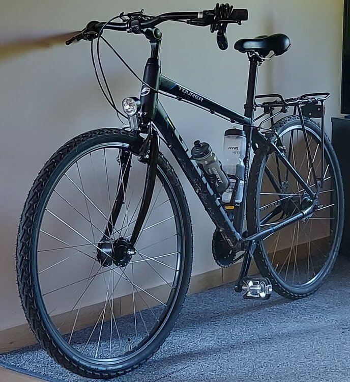 Ale szalejecie z liczbą posiadanych rowerów! U mnie, nie licząc złomu z poprzedniego wieku, z okresu młodości i dzieciństwa, od wielu lat mam tylko dwie sztuki: 1. Miejski trekking Giant Tourer GTS (trochę go zmodyfikowałem, wyrzuciłem amortyzator, błotniki, osłony, dałem szersze opony, załączam fotkę fabryczną i po modyfikacji). 2. Terenowy: Kross Earth 2.0 w wersji napędu 2x10, full (używam jako główny rower do wszystkiego).