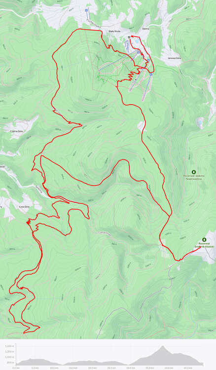 Z góry zastrzegam, że kręciłem się tam rowerem lub z buta w poprzednich dwóch sezonach, więc nie wiem co i jak się mogło pozmieniać po ulewach rok temu. W tym roku wciąż nie udało mi się znaleźć wolnego czasu by się wyrwać i przelecieć Sudety wzdłuż (ale nie poddaję się!). Spod bikeparku robiłem pętlę częścią tamtych tras i przez Śnieżnik. Pętli Jodłów nie jechałem, więc nic się nie wypowiem. Ostoję jechałem do zielonego pieszego, którym robiłem zawrotkę tuż przed końcem i generalnie mnie wynudziła. Byłem na świeżo po deszczach i te korzenie na skarpie były nie do przejechania na hardtailu w tamtych warunkach. Przy samych kaskadach fajny moment i potem w drugą stronę koło wychodni Nowinka super fragment. Tak to bym powiedział, że wyjątkowo nijaka i nudna ścieżka przez las. Na widoki nie licz Pętlę pod Śnieżnikiem dobrze wspominam - bardziej bikeparkowa, gładka i wymuskana trasa z fajnymi małymi hopami, niż naturalna rąbanka, ale banan był na twarzy. Z Siennej podjeżdżałem pętlą Międzygórze, też bardzo fajnie zrobiony singiel. Mix wymuskanej trasy, pieszych ścieżek z odrobiną korzeni i okazjonalnie krótkie fragmenty leśną drogą, ale też raczej z gatunku gładkich. Było kilka przerw w lesie z widokami na kotlinę. Po obskoczeniu pętli w okolicy Międzygórza skręciliśmy na Śnieżnik. Niestety dałem się znajomemu namówić na podjazd drogą, niebieskim pieszym od Międzygórza. Połowę dało się powoli jechać, połowę wypychaliśmy (początek sezonu w końcu, a droga z gatunku za płasko by iść, za stromo by jechać). Ja osobiście wolę wtedy wybierać jak najstromsze i jak najkrótsze szlaki, by z buta podejść wypychając lub wnosząc (ergo czerwony do schroniska). Za schroniskiem masz rezerwat, więc oficjalnie nikt nie jeździ 😉 Jakbym tam jechał, to pod górę oczywiście sporo prowadzenia. Zielonym, szeroka droga usiania kamieniami, zdecydowanie nie na wolne dni gdy się spodziewacie większego ruchu turystycznego. W dół swobodnie da się całość zjechać (może poza schodkami do rowu przy samym schronisku - jest kilka fajniejszych momentów. Na północ od szczytu schodziła wydeptana ścieżka przez rezerwat, bez szlaku, więc nawet pieszo nikt oficjalnie nie schodzi. Trochę niżej, w kosówce było sporo pozwalanych drzew, więc zdecydowanie nie ma tam czego szukać. Od schroniska w dół fajnie na Porębek niebieskim i czerwonym polecieć - jest kilka stromych momentów i mocno kamienista ta droga (nie wszystkie kamulce były stabilne jak tam szedłem; raczej fajny ujeb niż flow). Żółty od schroniska do przełęczy to szeroka droga (rowerowym od Kletna to chyba najprostszy podjazd na Śnieżnik będzie), jak się oddzieli od tej drogi, to gdyby jechać w dół ma kilka ciekawszych miejsc gdzie jest wąsko i stromo - ale to znowu nie flow. Tylko to jest chyba najpopularniejsza droga, którą podchodzą piesi, więc bezwględnie na dzień bez ruchu turystycznego. Ja domykałem pętlę z Siennej czerwonym GSS pod Czarną Górę i na przełęczy, na Żmijowej Polanie przeskoczyłem na Milky Waya (akurat na dole była przebudowa i zjechaliśmy na środek placu budowy ogrodzonego tylko od dołu ogrodzeniami 🙂 ) - tu z kolei nie ma co mówić o flow, bo większość się leci banalną leśną drogą. 49km / 1295m taka pętla. Jakby odpuścić Ostoję i podchodzić czerwonym od Międzygórza zamiast dookoła jechać niebieskim, to pewnie jeszcze trochę uszczkniecie z tych liczb. Schronisko pod Śnieżnikiem dania obiadowe miało mocno przeciętne... Ale sałatki serwowane do niektórych dań (i ilość tych sałatek) były niesamowite jak na PTTKowskie schronisko 😉 Co do rysowania tras - ja najczęściej klikam (na pieszym profilu jak przecinamy obszary chronione) na czeskich mapach. Gotowe ślady z lenistwa edytuję w gpx.studio, żeby nie pobierać edytora lokalnie na maszynę. -