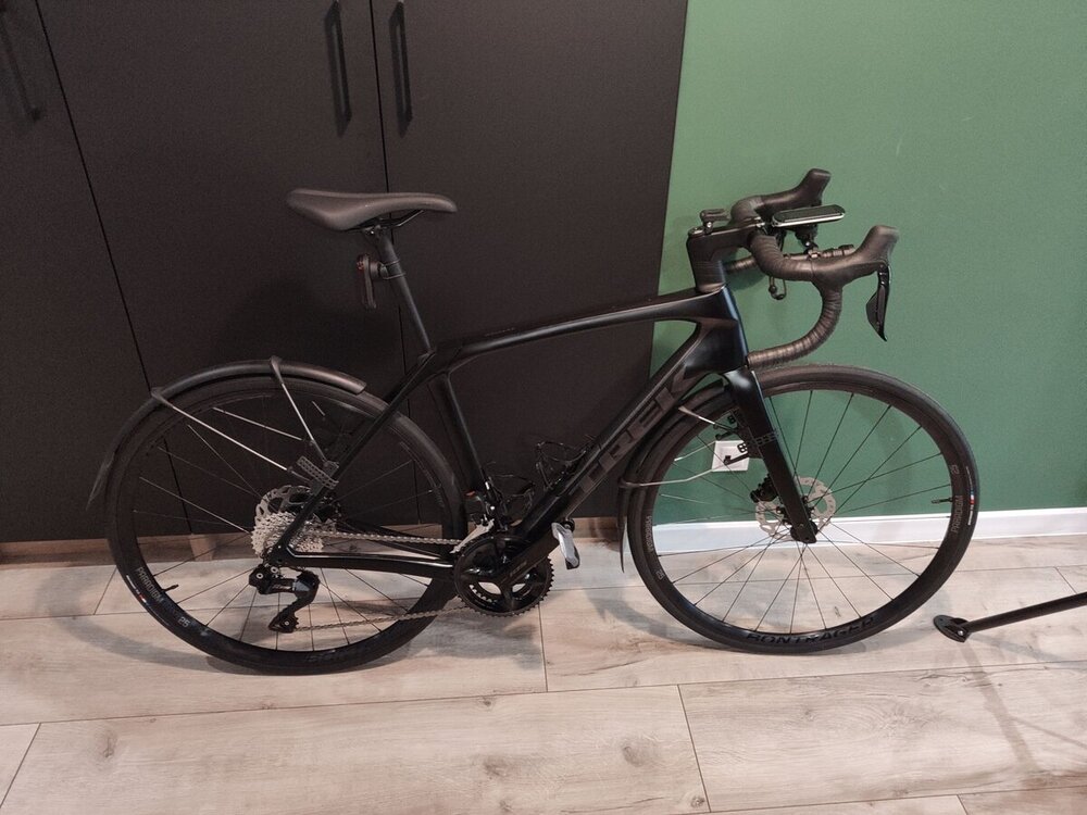 Bardzo chętnie zobaczę rower na Di2 dostępny teraz albo w najbliższej przyszłości w tej cenie. TO że ceny katalogowe takie ktoś podaje jak Giant Defy, nie oznacza, że te rowery będą gdziekolwiek. Wolę poświęcić ten czas na pracę zarobkową, lub po prostu iść jeździć, i mieć rower już, niż czekać miesiącami i tracić czas na poszukiwania w niepewności czy się coś pojawi czy nie. Czas to też pieniądz. Plus w Treku mam w miarę dobrą obsługę po sprzedażową, dożywotnią gwarancję na ramę, tubeless opony i IsoSpeeda który jest miłym dodatkiem, będzie trochę bardziej komfortowo. Udało się wyrwać go w cenie 22.8k z dodatkową sztycą. Wersja czarna -