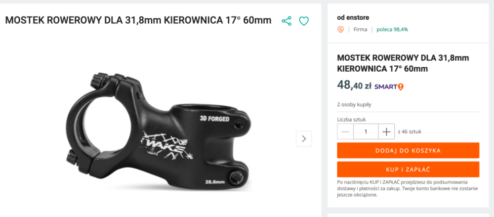 Kupię mostek 60-70mm 17 stopni 1 1/8 31.8 Dowolny, jak najtańszy - potrzebuję sprawdzić pozycję, więc nie chcę inwestować zbyt dużo.