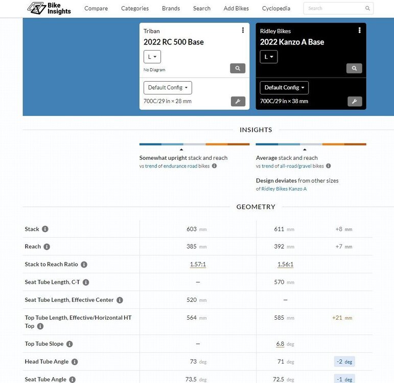 Witajcie, Mam 186 cm wzrostu, przekrok około 86 cm. Zamówiłem za 3200 w Deca RC500 na Sorze w rozmiarze L i zastanawiam się czy nie będzie na mnie za mały. Rower ma dojść w poniedziałek, więc mam trochę czasu, aby podpytać ludzi bardziej ogarniętych ode mnie w temacie doboru ramy. Cena jest na tyle atrakcyjna z perspektywy tego, co oferuje w tych pieniądzach konkurencja, że w sumie to zrobię co się da, żeby z nim zostać. Chcę po prostu pojeździć na szoso-gravelu na tyle dużo, ale zarazem bez rozbijania banku, żeby zobaczyć czy jest to mój konik i wtedy ewentualnie pomyślę o czymś lepszym. Wg tabelek sklepowych rozmiar L jest kierowany do osób 180-188 i o ile zdaję sobie sprawę, że te liczby same w sobie nic nie znaczą, tak może jednak uda się dojść do jakichś wniosków. Wczoraj robiłem przysiadkę do L w sklepie i po podniesieniu siodełka było lepiej (rower stał się responsywny, dobrze mi się manewrowało kierownicą itd.), ale sama kierownica była wówczas dla mnie za trochę za nisko. Pytanie ile cm mogę zyskać samym odwróceniem mostka. Mogę także pomyśleć o jego wymianie o ile to coś da. Rower ogólnie kiedy na niego wszedłem wydawał się delikatnie za mały, ale to może moje mylne wrażenie, bo górna rura była stosunkowo wysoko, około 3 cm od kroku, a sam nigdy na szosie nie jeździłem. Problemem mogło być to, że był za krótki i tu może pomoże sztyca z offsetem. Dla poglądu wrzucam porównanie Tribana RC500 w rozmiarze L (z lewej) z Kanzo A w rozmiarze L (z prawej). Kanzo A w L to rower, który wydaje się, że jest szyty na miarę. Jak na niego usiadłem i chwilę pojeździłem to w sumie bez zastanowienia i jakichkolwiek modyfikacji wszystko wydawało się naturalne i idealnie pode mnie. Z góry dzięki za pomoc ? Aha, nie da rady skorzystać z wypożyczenia bo najbliższe rowery w rozmiarze L są 100 km ode mnie, a XL to chyba w ogóle nie mają poniżej kilkuset km. Obdzwoniłem lokalne sklepy i też nigdzie nie ma na ekspozycji XL ?