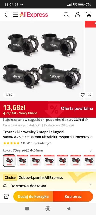 Elektryki (nowe) ciągle drogie, ale jak poszczęści to można złapać okazyjną promocję, mi się udało: https://roweroweporady.pl/f/topic/10776-mtb-elektr-coppi-maverick-teraz-orzeł%3F%3F/?do=findComment&comment=80202 Wiele samodzielnie ulepszyłem (podstawa błotniki!) i mam rower całoroczny ? https://roweroweporady.pl/f/topic/10779-czy-są-trwałe-elektryki/?do=findComment&comment=80292 @korleon96 jeśli masz jakieś doświadczenie z elektrykami to możesz się pokusić zakup używanego bo łatwo przetestujesz (bateria!), jeśli nie to ryzyko tanio kupować ? -