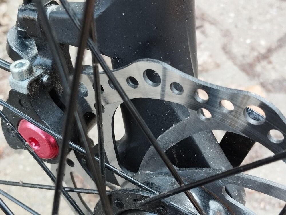 Czy koło jest dobrze osadzone we widełkach ramy też łatwo sprawdzić przez przyłożenie możliwie długiego liniału do tarczy hamulcowej i sprawdzenie "jak patrzy".