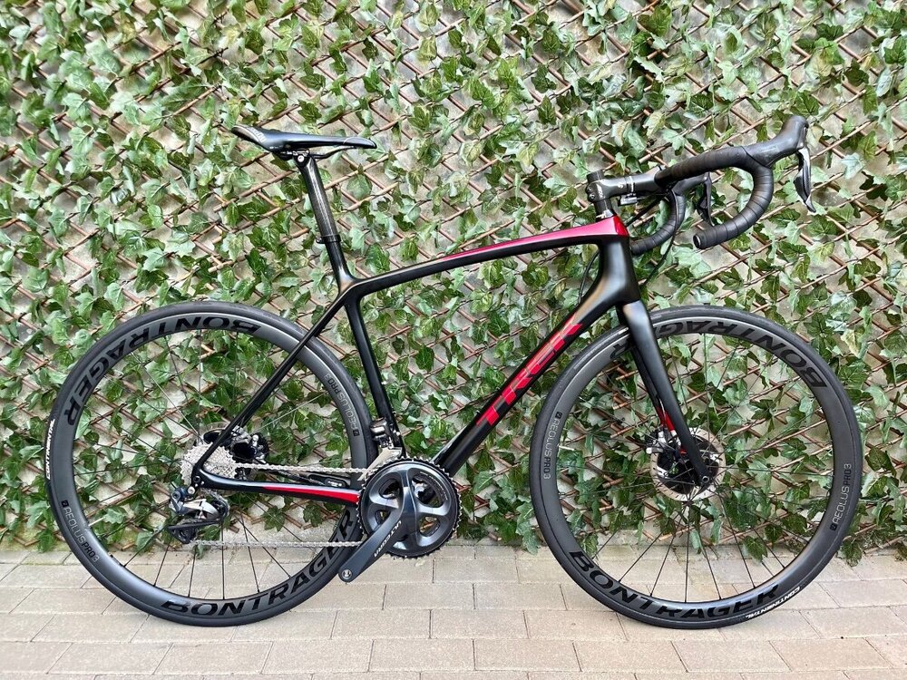 @jajacek dziękuję za odpowiedź, skarbnica wiedzy z Ciebie, fajnie że dzielisz się nią na forum. Z chęcią czytam Twoje wypowiedzi. Bardziej skłaniałbym się do Tarmaca, jest na elektronice, koła BMC CRD 321, ale dziś pojawiła się też opcja na kupno poniższego Treka Madone Sl6 gen 8 z foto i muszę pomyśleć. Do wyboru ze stożkami RSL62 lub V35. Trek cięższy ale wizualnie mi leży. Zastanawiam się który będzie bardziej komfortowy. Mam wrażenie że ta Madonka to będzie jeździć jak mój Domane ? A wydać kasę nie sztuka. Treka na V35 miałbym w cenie niewiele większej niż ten Tarmac z 2019. -