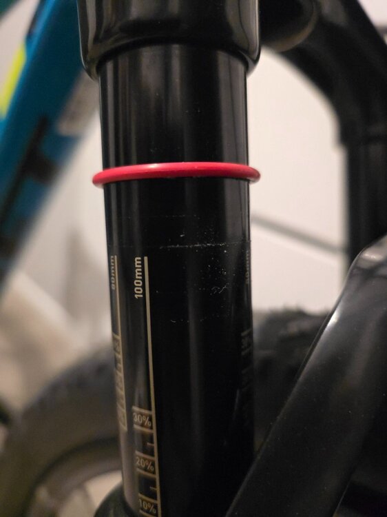 Dzięki, czyli na ten moment jest raczej dobrze ustawione. Wsiadając na rower bez jazdy, SAG wynosi jakieś 17%, ale nie wiem, na ile taki test jest miarodajny. U mnie jazda po mieście nie wygląda zbyt klasycznie. Wczoraj sprawdzałem, na ile będę mógł na nim poskakać, więc przy dużym nacisku przed skokiem czy bardzo siłowych naciskach na przednią oś pracował w zakresie do 80% bez blokowania. To będzie u mnie najczęstszy schemat pracy amortyzatora podczas jazdy. Blokadę mam z manetki, a przegląd zerowy został wykonany. Rower nigdzie nie stał, został rozpakowany i złożony dla mnie, ale jak ten przegląd zerowy został wykonany i co dokładnie zostało zrobione, to nie wiem. Przy zablokowaniu i siłowym nacisku na przednią oś – 25 mm, ale generuję wtedy sporo powyżej 100 kg nacisku przy takich próbach. Przejdę się najwyżej do serwisu, żeby zweryfikowali to jeszcze. -