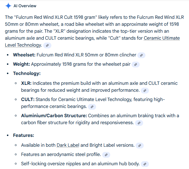 5. Nie wiem jak to jest z tymi kołami karbonowymi że są takie ciężkie. Miałem kiedyś koła alu-carbon ze stożkiem 50 mm Fulcrum Red Wind XLR. Ważyły katalogowo 1598 gramów. Były to koła tubeless ready z roku 2012 albo 2013. Więc jak dla mnie koła karbonowe ważące 1700 gramów to żart. AI Google tak o nich pisze: