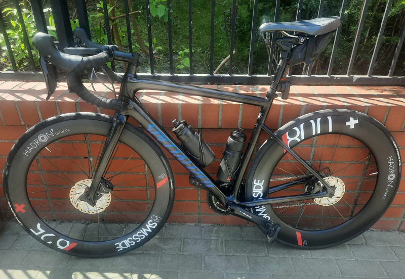 SwissSide Hadron są składane w fabryce DT Swiss w Obornikach co oznacza, że jest do nich bezproblemowy zapas części. Jak dla mnie mają też pewną kultowość bo jak mówi mój kumpel, Rekordzista Świata amatorów w jeździe godzinnej, Piotr Klin, prowadzący znany podcast rowerowy PNC, jeżdżą na nich tylko "kumate mordelasy" 🙂 Testowałem komplet 62/80 i mi się bardzo podobały. Zaletą jest też to że możesz kupić dwa różnej wysokości koła. Do czego bym zachęcał. Niższy przód i wyższy tył. Zgodnie z najnowszymi tendencjami w aerodynamice. Koła są typu hooked, więc nie ma problemów ze spadnięciem opony z obręczy jak w hookless i można pompować ile się chce. Obręcz ma 22 mm wewnętrznie więc jest zgodna z obecnymi standardami szerokości. Koła są zoptymalizowane pod opony 28-29 mm. Ja przy obecnej wadze również w pobliżu 85 pompuję oponę 29,2 mm, jak jadę z kumplami szybszą ustawkę 5,0 przód 5,2 tył. Czasem może nawet deczko więcej. Jak samotnie to stawiam na komfort i wtedy 4,8 przód, 5,0 tył. Na zdjęciu rower na kołach 62/80 Uważam, że wygląda zajebiście. Nie miałem żadnego problemu z bocznym wiatrem.