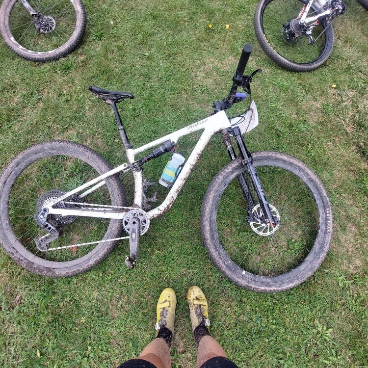 Jeśli chodzi o ściganie się. Przeszło ono dużą ewolucję. Włoszczowska, która ścigała się przez 20 lat zaczynała na hardtailu na kołach 26 cali. W środku kariery przeszła na hardtaila na kołach 29 cali. Na Igrzyskach Olimpijskich w 2016 roku w Rio de Janeiro sięgnęła po srebrny medal na rowerze Kross zbudowanym na jej potrzeby na Tajwanie. Jej rower w rozmiarze S ważył 7,9 kg bez pedałów. W kolejnych latach zwiększała się trudność wyścigów XCO czyli Cross Country Olimpic. W związku z czym pojawiły się w rowerach sztyce opuszczane czyli dopper post, znane u nas jako myk-myk. Są używane na zjazdach w celu obniżenia środka ciężkości i zwiększenia bezpieczeństwa. Zdecydowano że każda sztucznie przygotowana trasa XCO będzie zawierać trudne elementy techniczne. Po pierwsze rock garden czyli sekcję zjazdu po głazach czy też dużych kamieniach. Po drugie sekcje z dużą różnicą poziomów, gdzie należy wykonać skok. Często też sekcje zjazdu po balach. Często są też sekcje z ogromnymi korzeniami. Runda musi mieć 4-6 km. W związku ze zmianą trudności wyścigów, prawie wszyscy zawodnicy w wyścigach męskich przeszli na rowery w pełni zawieszone czyli full suspension. Te rowery są cięższe przez co minimalnie traci się na podjazdach, ale zapewniają lepszą kontrolę i są znaczne szybsze na zjazdach, gdzie odzyskujemy to co straciliśmy na podjazdach. Przy okazji wyścigów XCO wprowadzono też w Pucharze Świata i na Mistrzostwach Świata i Mistrzostwach Polski, krótki 20minutowy wyścig XCC Cross Country Short Track o mniejszej trudności. Początkowo wszyscy jeździli go na rowerach typu hardtail. Zmieniono jednak przepisy w takich sposób, że zawodnik w Pucharze Świata musi jechać zarówno wyścig XCC jak i XCO na tym samym rowerze. Wyeliminowało to efektywniejsze w wyścigach XCC hardtaile. W związku z tym większość zawodniczek, również przeszła na rowery typu full suspension. A teraz po tym wstępie przejdźmy do praktyki i polskiej sceny wyścigowej. Najzdolniejszą młodą polską zawodniczką jest Natalia Grzegorzewska, która wywalczyła dwa brązowe medale Mistrzostw Świata Juniorów w XCO. Ścigała się ona cały czas na hardtailu. Czemu? Bo po pierwsze miała włąsny sprzęt finansowany przez rodziców a po drugie ma 160 cm wzrostu i waży 48 kg. Więc rower 1 kg cięższy stanowi dużą zmianę na niekorzyść przy tej wadze. Jestem w kontakcie z jej ojcem, więc wiem, że testowali też rowery full suspension i na pętli testowej jechała na nich wolniej. Po zakończeniu wieku juniora i po przejściu do zagranicznego zespołu przeszła na rower, który dostarczył sponsor, firma Trek, typu full suspension. Druga nasz najzdolniejsza zawodniczka młodego pokolenia, Matylda Szczecińska, w momencie kiedy skończyła wiek juniorski i zaczęła starować w Pucharze Świata też przeszła na rower typu full suspension. Zdjęcie poniżej. A teraz przykład amatorki. Moja koleżanka, Katarzyna Matynia. Ściga się w mazowieckich wyścigach. Ponieważ większość tras jest płaska, nic poza hardtailem nie było jej przez lata potrzebne. Wygrywała większość wyścigów na Mazowszu. Natomiast jak ruszyła w cięższy teren to jednak przesiadła się na rower typu full suspension. Na zdjęciu poniżej jej Specialized Epic Evo.