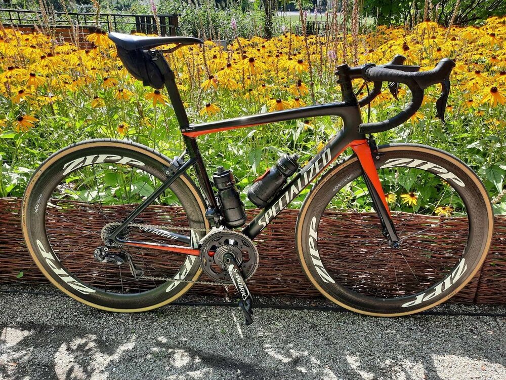 To jest skomplikowany temat. 1. Pociąg z napisem wyczyn już dawno odjechał. Więc AVG 40 samotnie nie osiągniesz. Chyba że wejdziesz na program Lance'a Armstronga. Najszybsza średnia z jaką samotnie pojechałem na kilkudziesięciu km to 33,5. 2. Na szosie pojawiłem się mniej więcej w Twoim wieku. Na rowerze podobnym do aluminiowego Huragana. Dziś z perspektywy czasu, wiem że był to nędzny rower i jeszcze nie był w prawidłowym rozmiarze. Męczyłem się na nim kilka lat. I na nim zacząłem jeździć w warszawskich ustawkach szosowych. Trochę za dużo ważyłem bo 82 przy 175 wzrostu. Ale grałem wtedy dużo turniejowo w tenisa, chodziłem na siłkę i forma była jak na mój wiek zajebista. Niestety nie miałem wiedzy co i jak, był to czas bez mediów społecznościowych, z bardzo nędzną wiedzą w porównaniu do obecnej. No i narobiłem sobie szkód skutkujących po kilkunastu latach operacją serca. Niestety niewytrenowany amator, jeżdżący na tętnach ok. 200 z byłymi zawodnikami to prosta droga na oddział kardiologii. Żeby tego uniknąć trzeba by poświęcić temu niemal cały swój wolny czas, być pod kontrolą dobrego lekarza sportowego, bardzo dobrze się odżywiać, spać, monitorować, suplementować, trening siłowy, funkcjonalny, regularne sesje z fizjo, jeździć na zgrupowania wysokościowe i trenować niemal jak pro zawodnik. Czyli być tzw. pro amatorem. No i jak się będziesz ścigał w wyścigach lub jeżdził w dużych ustawkach to będziesz brał udział w kraksach. Jest to nieuniknione. Nie było roku żeby nie leżał. Cud że ani razu nie byłem połamany. Ja namawiam żeby odpuścić i nie iść w tym kierunku. Tym bardziej że startując w amatorskich wyścigach zetkniemy się z byłymi wyczynowymi zawodnikami, którzy byli na koksie albo nadal są na koksie i z pro amatorami, którzy na ten koks już weszli jak zobaczyli że bez niego nie są w stanie być w czołówce wyścigów. Oceniam że ok. 50% czołówki amatorów w Polsce jeździ na koksie. A nie są to oceny bezpodstawne bo współpracuję z agencjami antydopingowymi a mój syn jest Mistrzem Polski w kolarstwie do lat 23. Jak wyglądał sezon pro amatora, który wygrał TdP amatorów i bywał pod opieką "specjalistów" podobnych do doktora Armstronga, dottore Michel Ferrari opisałem tu: Pierwsza szosa do 10000 zł na treningi i zawody - strona 5 - Jaki rower kupić do X złotych? - Forum Rowerowe Porady 3. A teraz co do roweru. Oczywiście że na lepszym rowerze pojedziesz szybciej. Czy musi to być Spec S-Works SL7 czy SL8? Nie musi. Mam SL6 Pro i nie różni się on wiele od SL7 czy SL8. Nie znając się marketing producenta sugeruje Ci, że jest między tymi rowerami jakaś duża różnica. Nie jest. Jest minimalna i dla Twojego poziomu nieistotna. Jeśli chodzi o rowery Specialized to jest akurat tak że idąc od dołu masz karbon, który jest najmniej sztywny i najgrubszy i najbardziej wytrzymały. Spec to oznacza literkami. Czyli na dole mamy laminaty nazwane przez niego 8R i 9R. Ramy z nich ważą zwykle gdzieś w okolicach 1200 gramów. I są stosowane w modelach Sport, Elite i Comp. Potem mamy 10R stosowany w Expert i Pro. Moja rama SL6 Expert/Pro waży 900 gramów. A na szczycie rowery z karbonu 11R i 12R, gdzie rama S-Works SL8 waży ok. 700 gramów. Rama ważąca 700 gramów połamie się w pierwszej glebie. Rama ważąca 900 gramów czasem przeżyje pierwszą i połamie się w drugiej czy trzeciej. Rama SL4 Comp, która ważyła 1200 czy może ciut więcej, na której na początku ścigał się mój syn, przeżyła wszystkie. A było ich z 10. Gdybym miał wybrać dziś jakiś rower do ścigania, z tych które testowałem to byłby to albo Tarmac SL6 albo Merida Reacto. Merida Reacto jak na rower aero była ekstremalnie komfortowa. A komfort jest cholernie ważny. Co do Tarmaca to wybrałbym albo niższy model typu Sport/Comp/Elite, który był stosunkowo komfortowy, nawet jak na mój zniszczony kręgosłup. Albo ten co mam czyli rama Expert/Pro która jest bardzo sztywna ale na sporo młodszego i w miarę szczupłego chłopa powinna ok. Co do osprzętu to jeśli chodzi o grupy mechaniczne Shimano 105 jest w pełni wystarczające. Jeśli chodzi o grupy elektryczne to Shimano 105 Di2 czy Ultegra Di2 działają znakomicie. Szybkości nie poprawią ale jeździ się na takiej grupie przyjemniej i jakość zmiany przełożeń nie pogarsza się z czasem, tak jak jest to w rowerze z grupami mechanicznymi na linkę. Od SRAM sugeruję się trzymać z daleka. Waga roweru. Ma znaczenie przy przyspieszaniu i jeździe na podjazdach. Rowery ważące po 9 kg uważam za krowy. Ale mnóstwo ludzi na nich jeździ i dają radę. Zawodnik wyczynowy jak ma rower ważący powyżej 7,5 kg to go opłakuje 🙂 Nie pamiętam ile waży Tarmac SL6 Sport czy Comp. Pewnie trochę ponad 8 kg. Nasz Tarmac SL6 Pro ważył 6,8 z pedałami w wersji na góry na kołach ważących 990 gramów po szytkę. Ale na "normalnych" kołach karbonowych treningowych pod oponkę, ważył coś koło 7,3 kg. Tak wyglądał komfortowy Tarmac SL6 na Shimano 105, który testowałem na super szybkich kołach do ścigania się w triathlonie lub po płaskim, szwajcarskiej firmy SwissSide. Ze sztycą posiodłową z mojego Roubaix poprawiająca komfort. Z tym że można ją tylko zamontować w tych niższych modelach., Sport/Elite/Comp. Do Expert/Pro już nie pasuje. Tak wygląda mój SL6 Pro. W wersji pod tarcze podobnie ale będzie ważył ze 400 gramów więcej. -