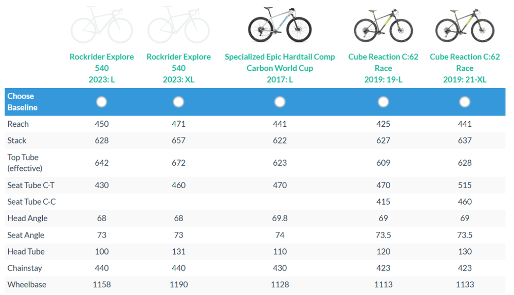Na jak się uparłeś na XL i twierdzisz że nie możesz jeździć na L bo żona jeździ na M (co kompletnie nie ma nic do rzeczy) to ja Cię na siłę od tego pomysłu nie będzie odwodził 🙂 Napisałem wyraźnie. Że w XL dostaniesz rower wyższy i dłuższy. Tu jest geo ze strony Decathlonu: W Cube L miałeś reach 425 i stack 627 W Rockrider XL masz 470 i 658. Czyli rower 4,5 cm dłuższy. Więc będziesz musiał skrócić mostek 4 żeby wyjść na zbliżoną pozycję. Co może nie być możliwe. Mostek ma 60 mm w standardzie. Rower z ekstremalnie krótkim mostkiem będzie bardzo nerwowy i może się kiepsko podjeżdżać pod strome podjazdy. W Rockrider L masz 450 i 630. Tu trzeba skrócić mostek 2-3 cm żeby wyjść na podobną pozycję. Większy rower będzie cięższy i mniej zwrotny. Wzrost i zasięg rąk masz na granicy L i XL ze wskazaniem na XL przy normalnej, stosunkowo sportowej pozycji. Chyba że ktoś chce mieć pozycję ekstremalnie wyprostowaną to wtedy należy dokonać modyfikacji. Maksymalna bezpieczna rekomendowana ilość podkładek pod mostkiem to 30 mm. A 40 mm to totalny maks. -