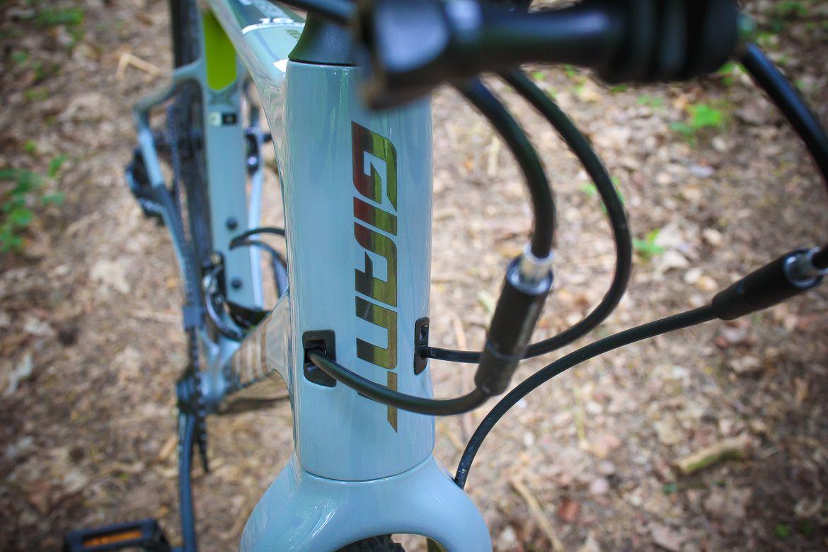 Rama elektrycznego Trance’a jest wykonana z aluminium, mamy tu oczywiście poszerzaną główkę rury sterowej tapered, linkę przerzutki i tylnego hamulca poprowadzono w ramie.