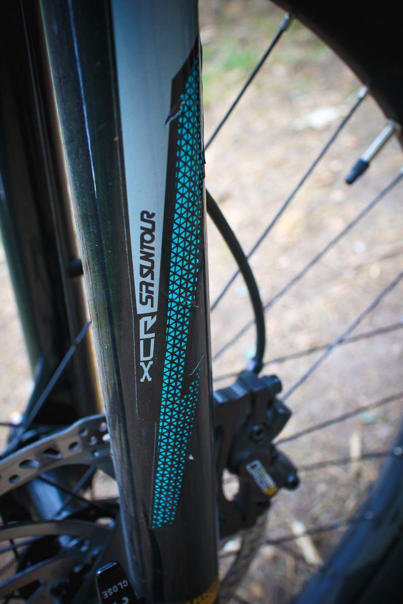 Z przodu za amortyzację odpowiada powietrzny Suntour XCR o skoku 130 mm i poszerzonych goleniach ze standardowych 32 mm do 34 mm. Do tego zastosowano tu sztywną oś w poszerzonym standardzie Boost. Grubsze golenie i szersza piasta pozytywnie wpłynęły na sztywność przodu podczas jazdy, natomiast trzeba pamiętać o tym, że nie jest to amortyzator do szybszej i dynamiczniejszej jazdy. Cóż, za niższą ceną idą pewne ograniczenia, natomiast z czasem warto pomyśleć o wymianie widelca na coś lepsze.