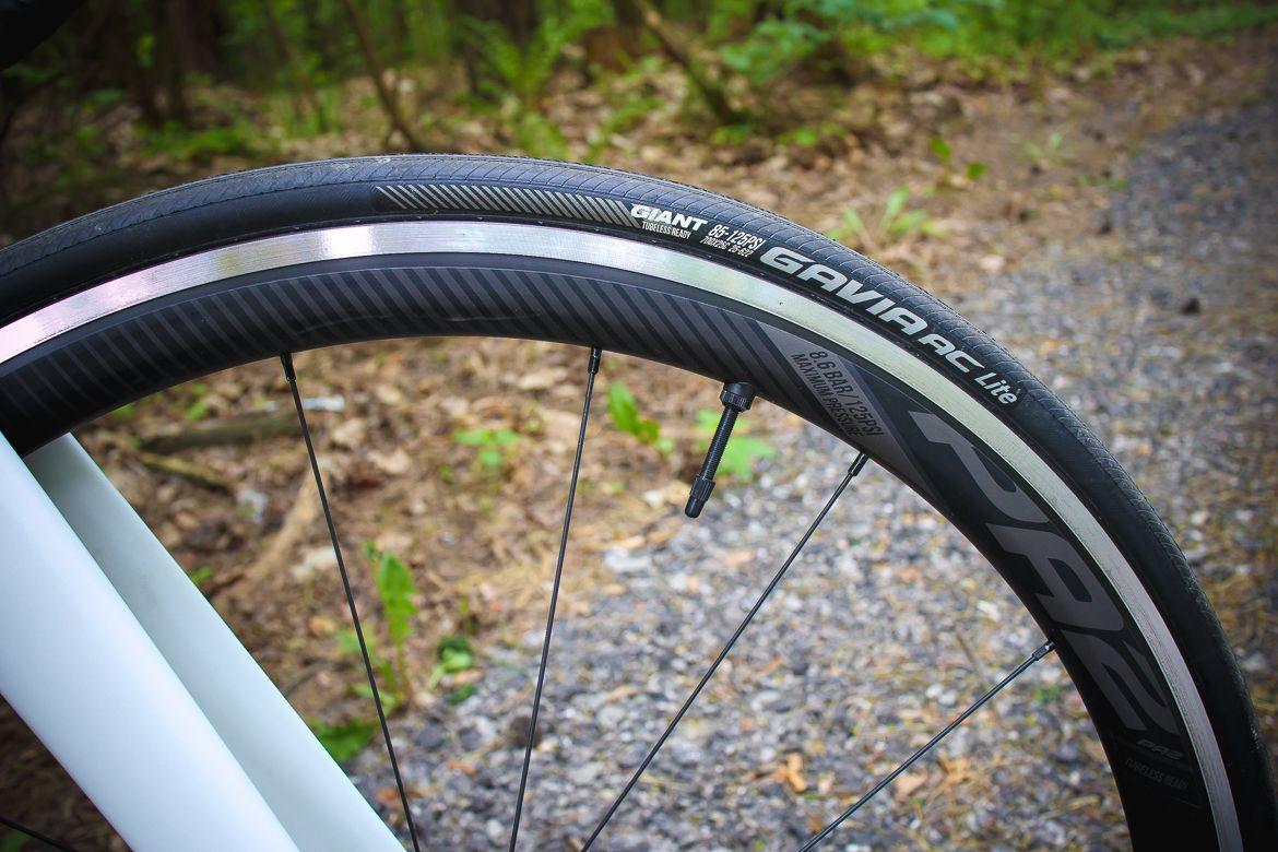 Aluminiowe koła to autorska produkcja Gianta, z piastami Formula. Mają stożek 30 mm, co tak jak wcześniej pisałem, dobrze łączy mniejsze opory powietrza, z uniwersalnością. Wysokie stożki 55 czy 65 mm sprawdzają się najlepiej na wyścigu, w codziennych treningach mogłyby być utrapieniem przy silnym, bocznym wietrze.