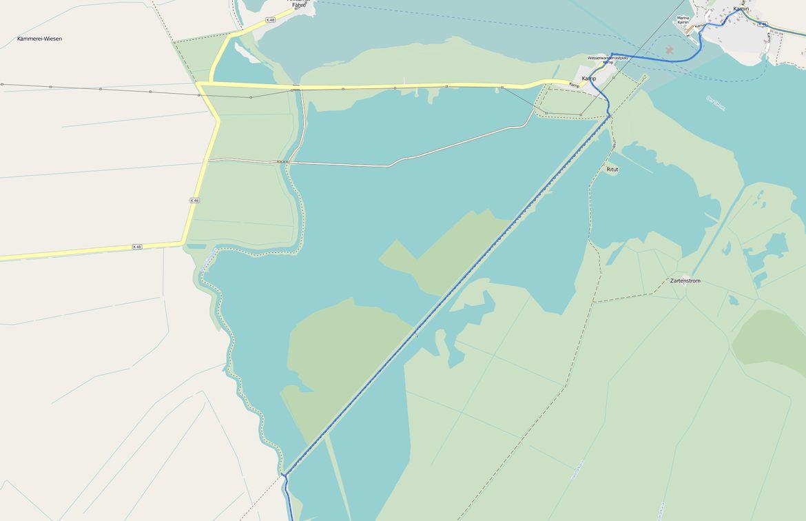 Szlak tamtędy nie prowadzi, ja pojechałem do Kamp, żeby skrócić sobie drogę promem. Szlak Odra-Nysa oficjalnie idzie do Anklam, okrążając Zalew Szczeciński.