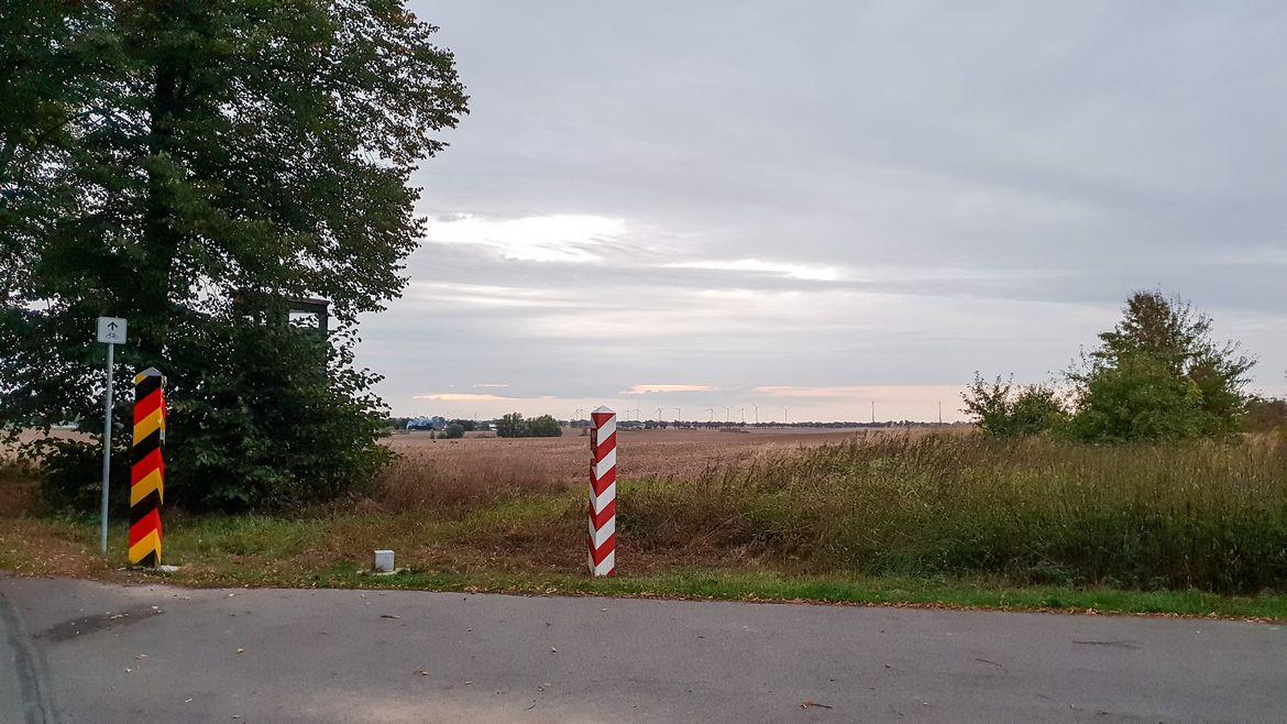 Na wysokości Gryfina, za miejscowością Staffelde granica przestaje biec wzdłuż Odry. Rzeka odbija na wschód i po polskiej stronie przepływa przez Szczecin i wpada do Zalewu Szczecińskiego. Na powyższym zdjęciu możecie zobaczyć miejsce, w którym granica PL-DE spotyka się już na lądzie. Chwilę później odbiłem na polską stronę i pojechałem w stronę Kołbaskowa i Szczecina. Czemu nie zostałem po niemieckiej stronie, trzymając się szlaku? Nie pamiętam :) Teraz pewnie bym tak zrobił, bo ruch ciężarówek w stronę Kołbaskowa był niesamowity – jadą tam samochody zmierzające do autostrady oraz do magazynów firmy Amazon. Na całe szczęście od Amazona w stronę Szczecina biegnie ładna, asfaltowa droga rowerowa – jazda tamtędy drogą krajową, po ciemku, nie należałaby do przyjemności.