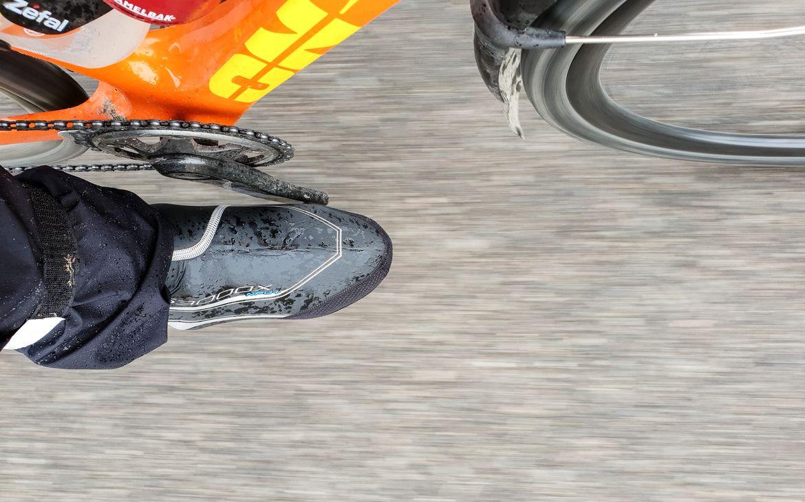 Na zdjęciu są zwykłe, softshellowe spodnie (nie są wodoodporne). A na buty miałem założone ochraniacze przeciwdeszczowo-ocieplające.