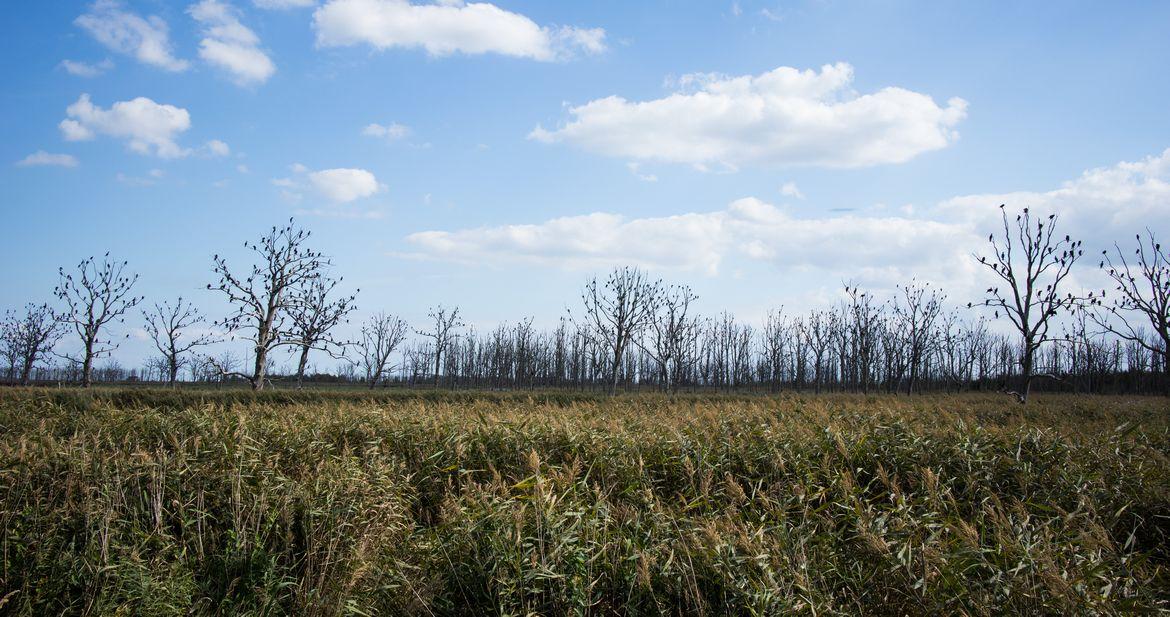 Jedynym plusem tego piekielnego odcinka były drzewa, które mijałem po drodze. Te kształty, które na nich widzicie, to nie są dziwne liście – to cała MASA ptaków :) Są to częściowo wyschnięte tereny Zalewu Szczecińskiego i podejrzewam, że obecność tych ptaszysk jest tam nieprzypadkowa – mają tam po prostu wielką wyżerkę :)