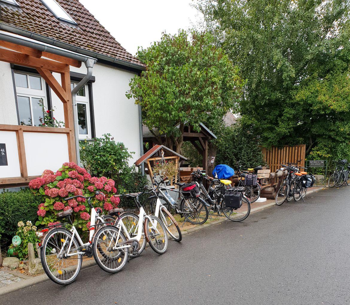 Zainstaluj sobie aplikacje bett&bike (o ile dobrze pamiętam nazwę) są w niej wszystkie niemieckie szlaki rowerowe oraz oferta hoteli/agroturystyki/ ogólnie bazy noclegowej dla rowerzystów. Przy czym żeby zostać tam potraktowany jako rower friendly to trzeba spełnić sporo określonych warunków.