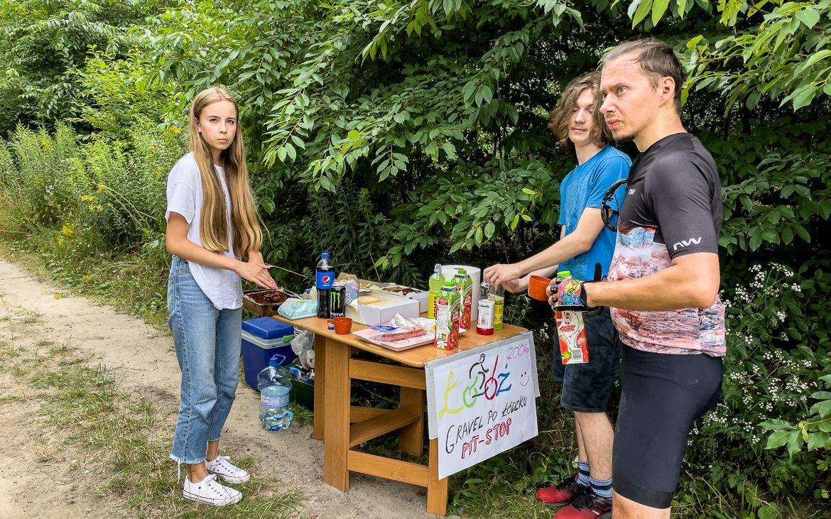Po drodze mijaliśmy dwa pit-stopy, ale były to oddolne inicjatywy kibiców :) Regulamin dopuszczał wsparcie dla zawodników na trasie, jeżeli tylko udzieli się go wszystkim uczestnikom. Pierwszy koordynowała Iza, drugi Max – oba bardzo mi pomogły napojami i bananami. Były też inne dobre rzeczy, ale ja już nie miałem siły jeść więcej :) Dzięki za Waszą pomoc!
