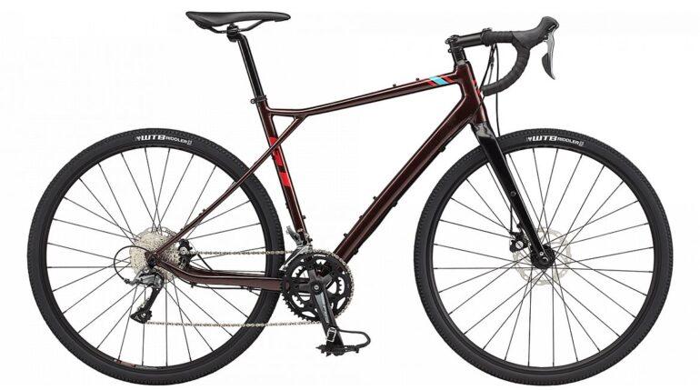 GT Grade Elite – we wstępie pisałem o przegiętych cenach katalogowych i ogromnych zniżkach. Grade Elite jest na tyle ciekawy, że dla GT zrobiłem wyjątek i pokażę ich rower, wyceniony pierwotnie na 5800(?!) złotych. Teraz obowiązuje cena 3750 zł, a da się go znaleźć jeszcze trochę taniej. Pokazuję go dlatego, że jako jedyny gravel w tym przedziale cenowym został wyposażony w sztywne osie kół. Nie jest to coś, co jest niezbędne w rowerze, jednak bardzo podnosi jego funkcjonalność (mityczna sztywność, przy amatorskiej jeździe, jest kwestią dyskusyjną). Poza tym mamy tu aluminiową ramę i karbonowy widelec, w których producent umieścił sporo dodatkowych otworów montażowych na akcesoria. Poza tym rama jest przygotowana do montażu sztycy regulowanej (droppera) z zewnętrznym prowadzeniem przewodu. Za napęd odpowiada w dużej mierze grupa Shimano Claris w układzie 2×8. Tak jak pisałem akapit wyżej – tak jak we wszystkich gravelach, które znalazłem, zdecydowanie brakuje lżejszych przełożeń. Korba 48/32 i kaseta 11-34 to nie jest szczyt marzeń na wyprawy w wymagającym terenie. Poza tym znajdziemy tu mechaniczne hamulce tarczowe Tektro czy opony WTB Riddler.