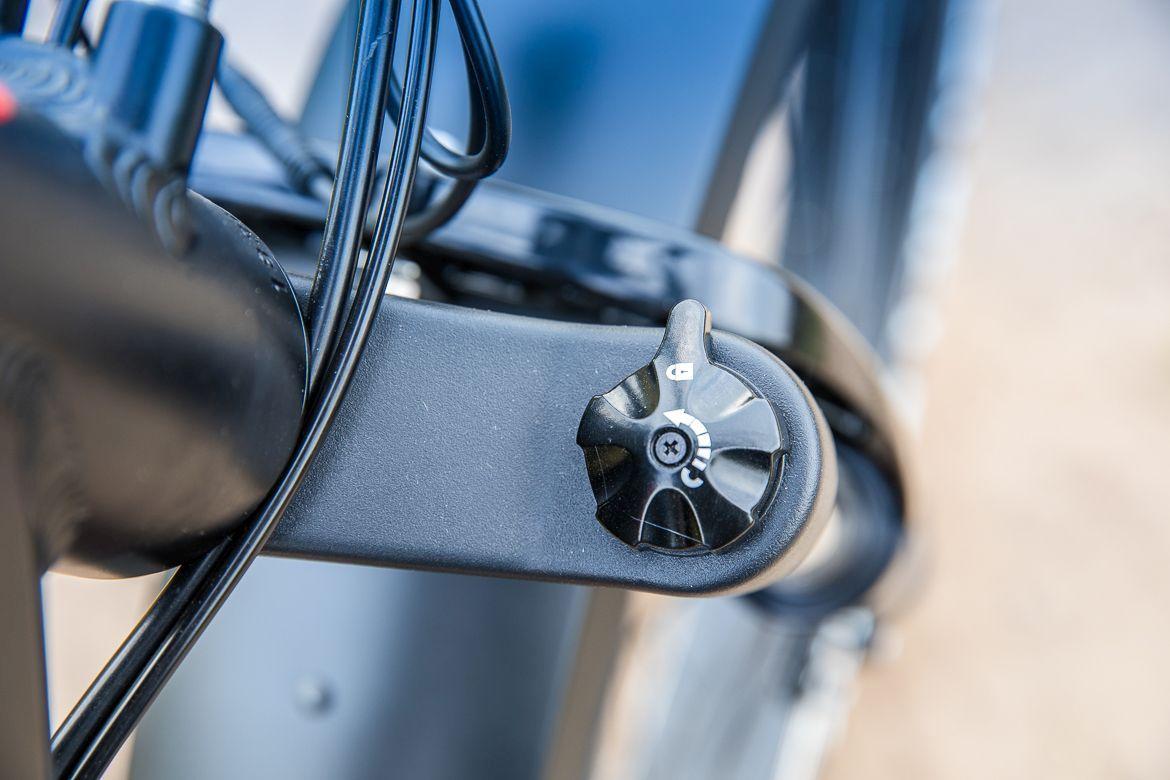 Tryb prowadzenia można włączyć także korzystając z obrotowej manetki, znajdującej się pod prawą dłonią. Jest ona przydatna np. w sytuacji gdy staniemy pod górę z wrzuconym ciężkim biegiem, a czujnik obrotu pedałów jeszcze nie wykryje, że zaczęliśmy nimi kręcić. Wystarczy przekręcić manetkę, rower sam ruszy (z prędkością pieszego) i ułatwi rozpoczęcie pedałowania, co uaktywni silnik.