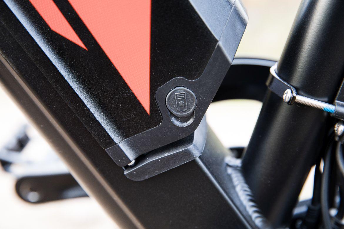 Aby naładować akumulator, nie musimy zdejmować go z roweru, choć jest taka możliwość. W zestawie dostajemy dwuamperową ładowarkę, która naładuje baterię od zera do pełna w około 7 godzin, choć na marginesie nie polecam regularnego rozładowywania jej do zera (więcej na ten temat we wpisie o tym jak zwiększyć zasięg w rowerze elektrycznym).