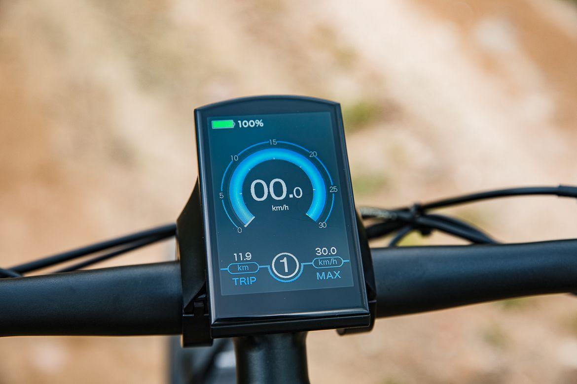 Wszystkie informacje niezbędne podczas jazdy wyświetlane są na zamontowanym centralnie dużym ekranie. Znaleźć tam można stan naładowania akumulatora (podany w procentach), prędkość z którą się poruszamy, wybrany tryb wspomagania, przejechany dystans wycieczki, a także (do wyboru) prędkość maksymalną, średnią, całkowity czas i dystans jazdy. Do szczęścia brakuje chyba tylko zegarka.