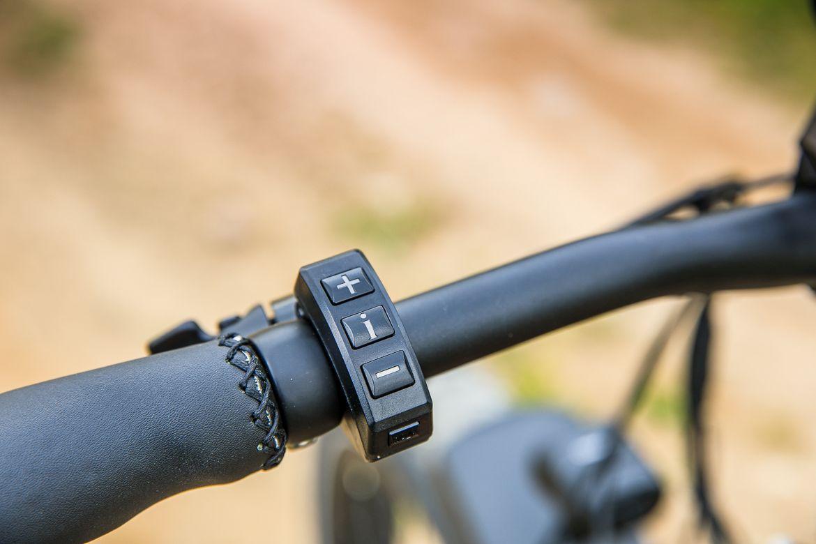 Obsługa wspomagania jest bardzo intuicyjna i sprowadza się do włączenia silnika (przycisk ‘i’ na panelu sterującym) oraz wyboru trybu wspomagania (jednego z pięciu). Przytrzymując przycisk ‘+’ możemy także włączyć oświetlenie, a poniżej minusa znajduje się przycisk “Walk”, który uruchamia tryb prowadzenia. Rower wtedy sam toczy się z prędkością pieszego, ułatwiając np. wyprowadzenie go z garażu.