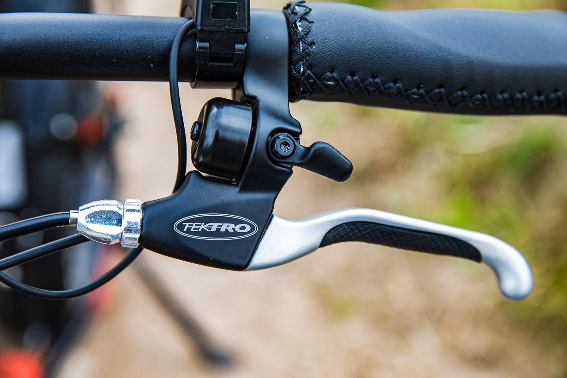 Hamulce to element, który z jednej strony działa nieźle, ale z drugiej wymaga pewnej poprawy. Na pokładzie Robina znajdziemy mechaniczne hamulce tarczowe Tektro Aries z tarczami o średnicy 180 mm, również wyprodukowanymi przez Tektro. Ten zestaw na pewno działa lepiej od niemarkowych hamulców, jednak przy takiej wadze roweru (i jego cenie) widziałbym tu już mocniejsze, hydrauliczne hamulce tarczowe.