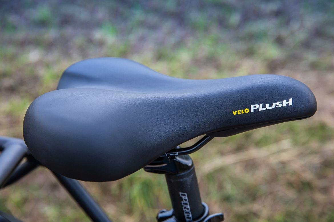 O siodełku mogę napisać tyle, że było zaskakująco wygodne, mimo że nie przepadam za takimi “kanapami”. Każdy ma oczywiście inną budowę ciała i inne preferencje, jednak mi na siodełku Velo Plush jeździło się po prostu dobrze. Pasuje do rekreacyjnego charakteru tego roweru.