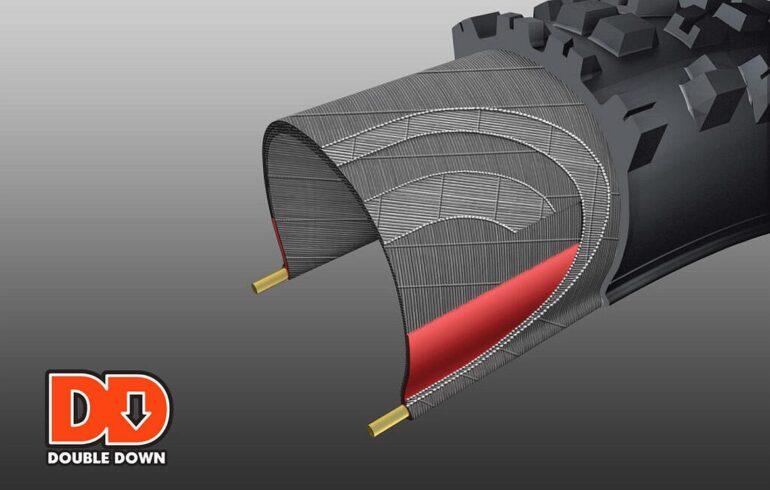 Double Down (DD) to rozwiązanie stosowane w wyścigowych oponach do enduro oraz w elektrycznych rowerach MTB. Dwie warstawy lekkiego materiału 120 TPI zostają połączone z wkładem butylowym na boku opony.