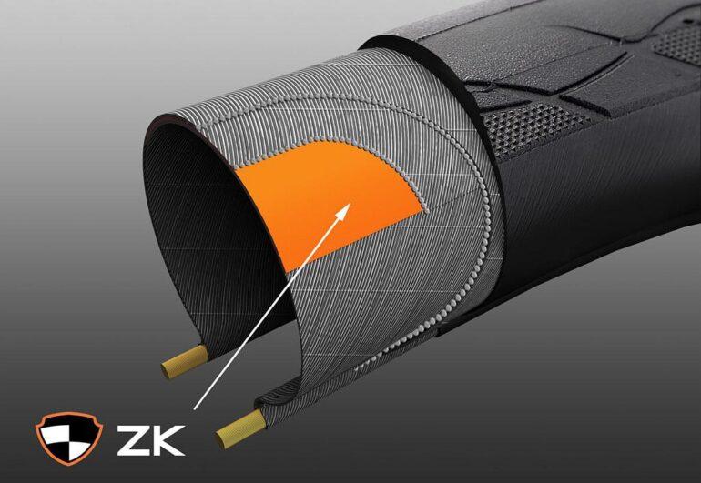 ZK to lżejszy, bardziej elastyczny i mocniejszy materiał od K2. Znajdziemy go w wybranych modelach opon szosowych Maxxis.