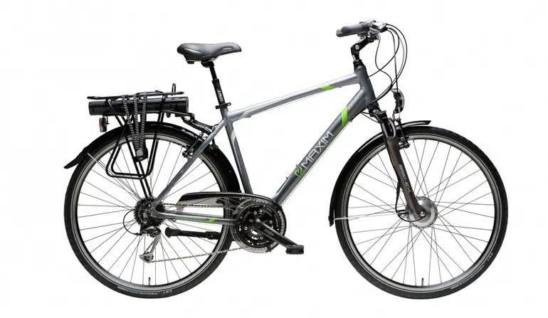 Maxim EMT 2.4 – ten rower trekkingowy wyposażony został w pełen osprzęt elektryczny marki Bafang. Silnik zamontowany jest w przednim kole, a akumulator o pojemności 450 watogodzin pod bagażnikiem. Producent nie zapomniał o oświetleniu, a do tego dostajemy pełne, turystyczne wyposażenie – błotniki, stopkę i bagażnik.
