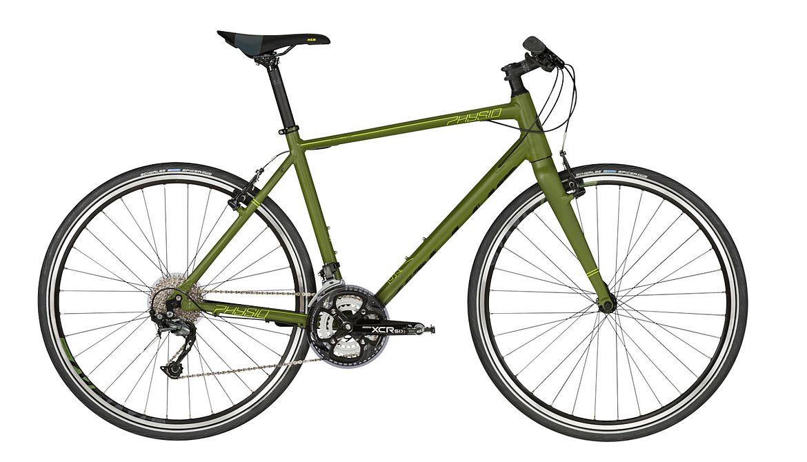 Kelly’s Physio 30 – kosztuje 2800 zł, choć widziałem go za 2000 zł (z rocznika 2018). Napędem bardzo przypomina Gianta i Treka, widelec jest aluminiowy, opony to Schwalbe Spicer o szerokości 30C. Można jeszcze kupić model Physio 50 2018, z hamulcami V-Brake i napędem szosowym Shimano Sora 2×9, model 2019 ma już hamulce tarczowe.