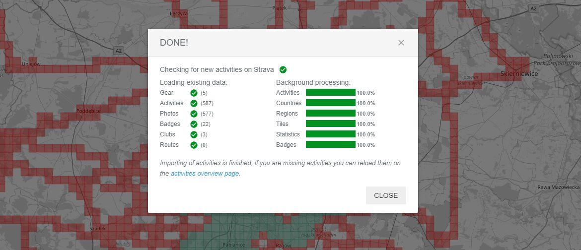 Gdy wszędzie pojawią się zielone ptaszki, a paski wypełnią się w 100%, proces wczytywania aktywności zostanie zakończony. Jeżeli coś się przycięło, warto odświeżyć stronę. Statshunters jedynie pobiera wasze aktywności ze Stravy, nie da się tam nic popsuć czy skasować.
