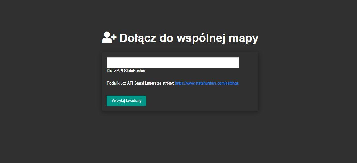 Po zalogowaniu się, pojawi się prośba o podanie kodu API (API-code) ze strony Statshunters. Znajdziecie go pod tym adresem, trzeba go przekopiować do okienka widocznego powyżej.