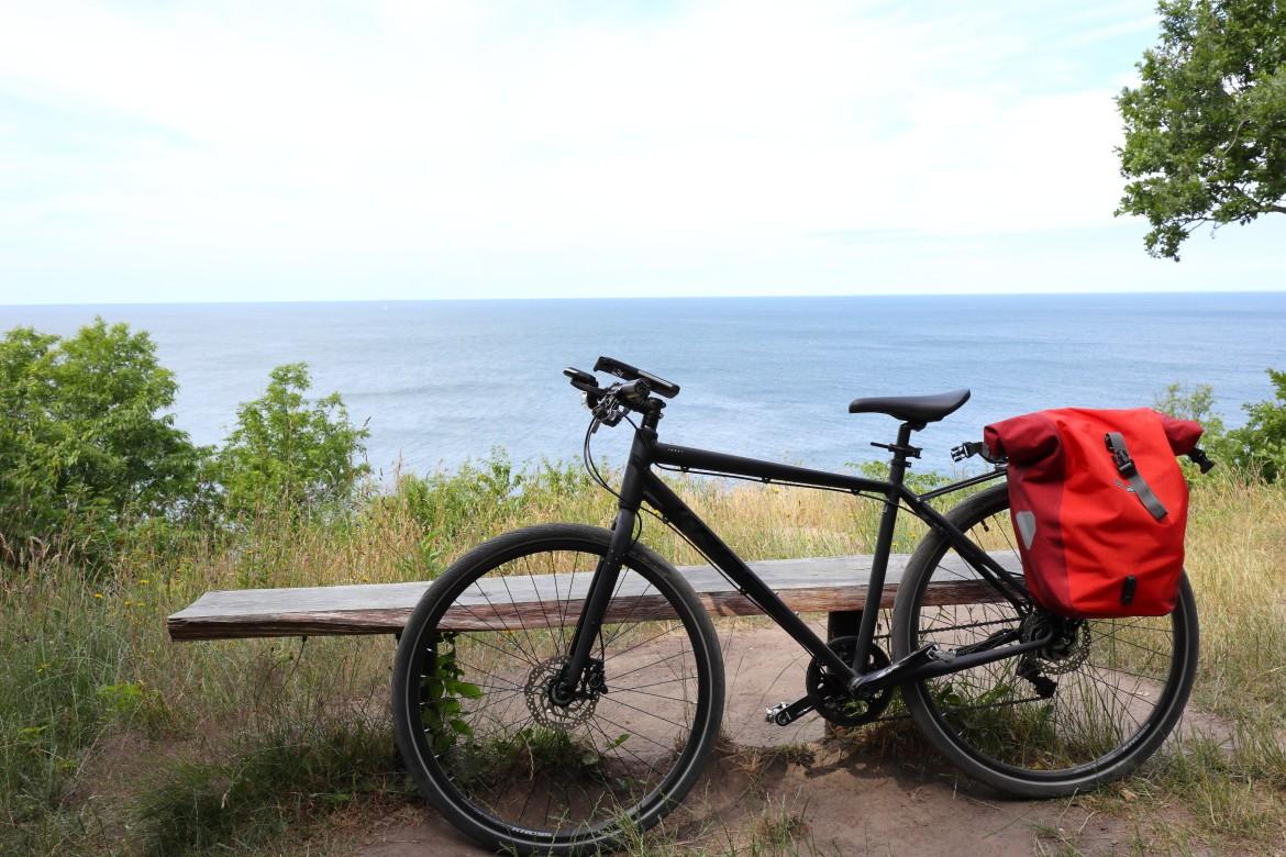 Do klifu można bez problemu dojechać trasą, którą znajdziecie w załączonym pliku gpx. Ale w dalszą drogę na północ, polecałbym cofnąć się do parkingu i tam poszukać rowerowego szlaku. My niestety ruszyliśmy pieszą ścieżką i mimo pięknych widoków, nie było to przyjemne doświadczenie. Może rowerami górskimi dałoby się tam wygodniej przejechać, a tak, musieliśmy sporo odcinków nieść nasze rumaki.