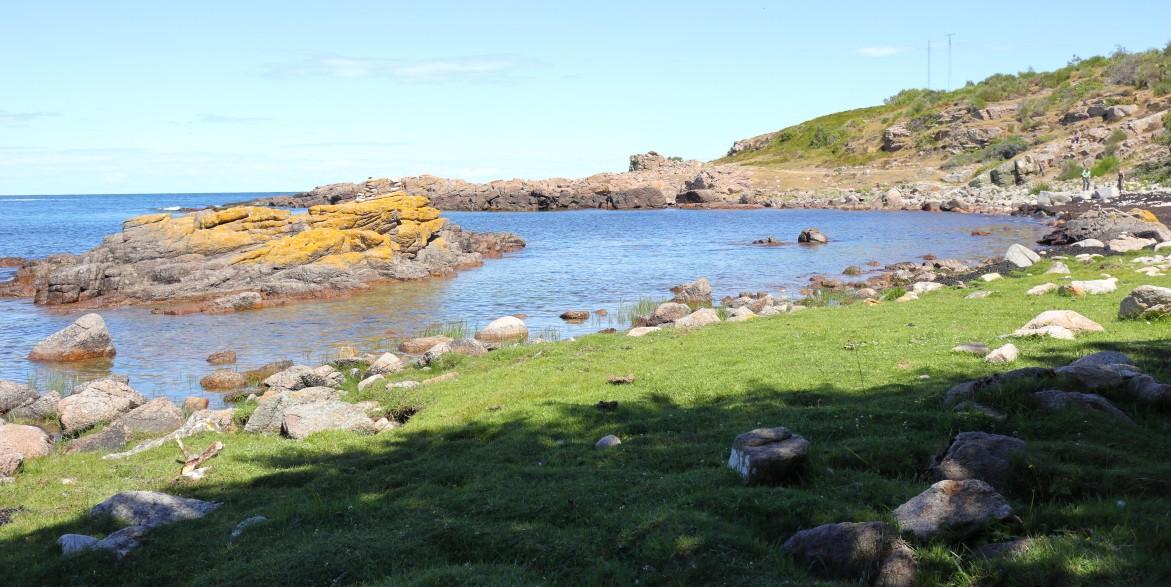 Pamiątkowe zdjęcie pod latarnią musi być, ale warto przejść się ścieżką dalej na zachód. Za chwilę traficie na cudownie zieloną polanę, zlokalizowaną… tuż przy morzu! Takich niecodziennych (dla nas) połączeń nie brakuje na Bornholmie, a tutaj bardzo łatwo się dostać nad samą wodę. Jest coś pięknego w możliwości położenia się na gęstej, soczystej trawie, by jednocześnie słuchać dźwięków morza.