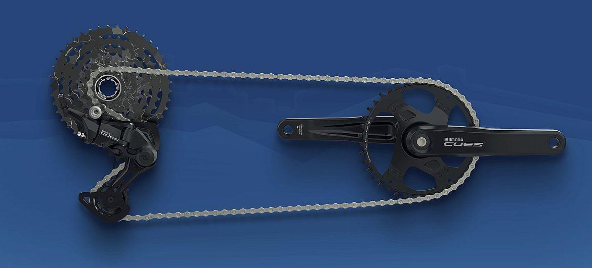 Dużym plusem nowych grup Cues jest ich wspólna kompatybilność. Będzie można użyć na przykład 9. rzędowej manetki i 11. rzędowej przerzutki, a do tego dołożyć dowolną korbę Cues. Jednocześnie we wszystkich przypadkach założymy 11-rzędowy łańcuch Linkglide (np. Shimano CN-LG500), który co ciekawe będzie zgodny z innymi łańcuchami Shimano. Czyli mimo innych kaset, będzie można wykorzystać np. 11. rzędowy łańcuch Shimano XT w systemie Hyperglide.
