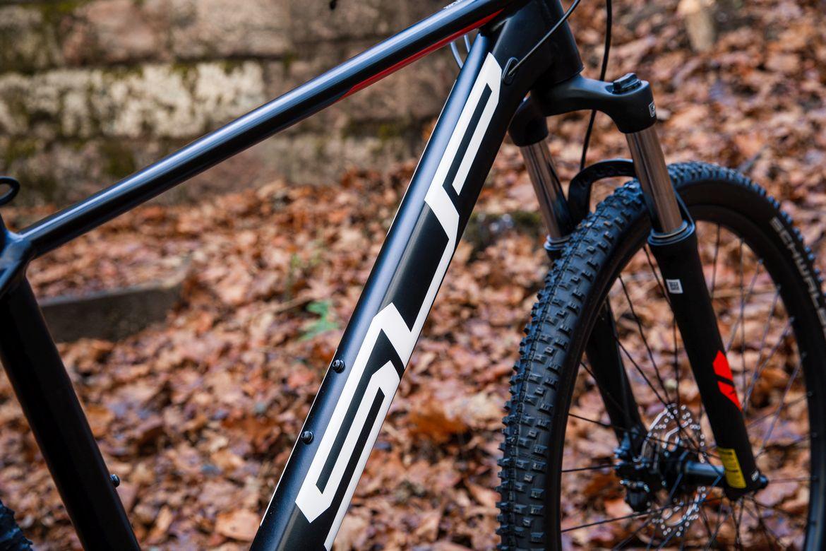 Koła kręcą się na piastach Shimano TX505. To prosta konstrukcja, oparta na łożyskach kulkowych, ale dzięki temu łatwa i tania w serwisowaniu. Każde koło zapleciono z 32 szprych (marki Sapim, za co duży plus) co zwiększa wytrzymałość koła. Na obręcze producent założył jedne z najpopularniejszych opon MTB w Polsce (sam je mam w swoim rowerze) czyli Schwalbe Smart Sam o średnicy 29 cali i szerokość 2,1 cala.