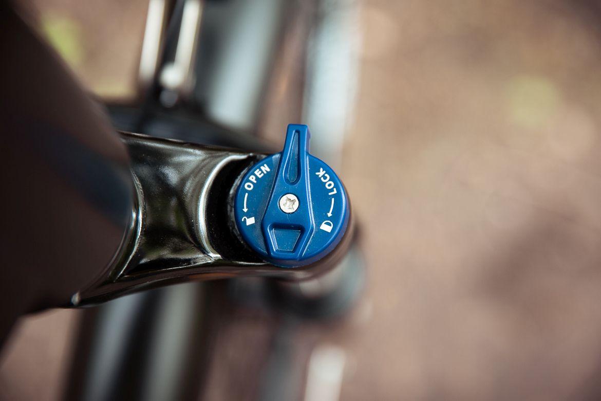 Widelec dodatkowo wyposażony jest w dźwigienkę do blokowania. Moim zdaniem to niepotrzebny bajer, wolałbym zamiast możliwości blokady, by amortyzator po prostu trochę lepiej działał. Niemniej w tym budżecie można na to przymknąć oko.