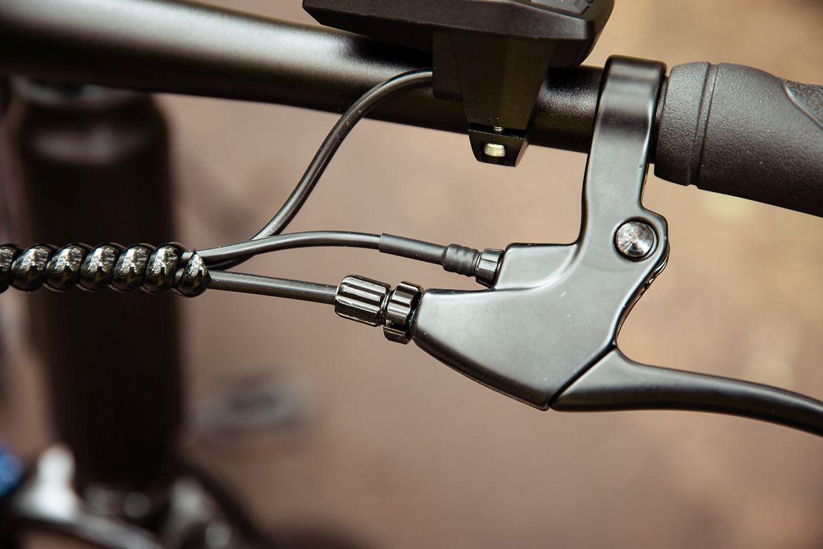Dla bezpieczeństwa klamki hamulcowe są połączone ze sterownikiem silnika i natychmiast po wciśnięciu którejkolwiek z nich – silnik wyłącza się.